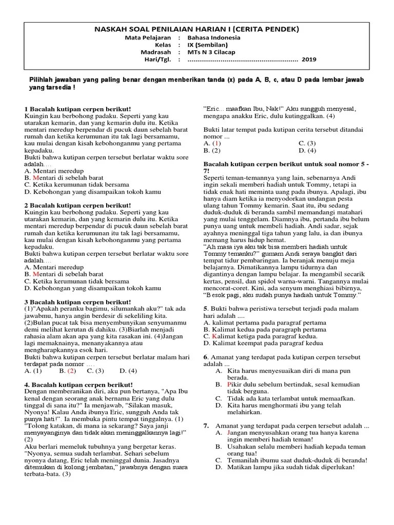 Berikut ini adalah contoh soal . Unsur intrinsik yang dominan dalam kutipan novel tersebut adalah …. Latar dalam cerpen merupakan segala sesuatu yang berkaitan dengan tempat, waktu, dan suasana dalam cerpen. Disajikan kutipan cerpen, siswa dapat menentukan bukti watak tokoh pada kutipan cerpen tersebut. Latar waktu dalam kutipan cerpen tersebut adalah.